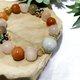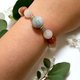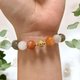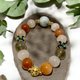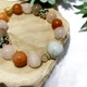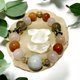 以多彩兔毛水晶为主轴,搭配奶白石、蜜粉晶与金工花珠,