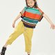鲜艳明亮的色调,宛如大雨过后一道明亮的彩虹 充满民族特色的布纹,为设计增添出色的元素 轻薄的布料制成让宝贝整个夏日都凉爽舒适 彩桥那端折袖上衣 带有夏日浓烈色彩的同时,也如彩虹般轻盈 肩上配色扣子及袖口细节,为整体增添特色