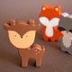 The wooden set of woodland animals is made of alder wood and finished with linseed oil and beeswax, which has a satin gloss finish. All items are handmade.