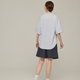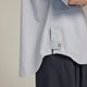 蓝白色的细条纹面料具备抗菌与凉爽的机能性,在夏日穿着更显舒适。