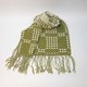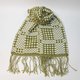 线材为100%美丽诺羊毛线以手工梭织织成围巾,围巾两面织纹呈现的图案略有不同。