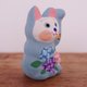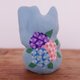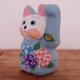 It is a cute handmade beckoning cat. The left hand invites people such as friends and customers.