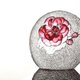 靠近中心处,高浮雕一枝凌寒怒放的梅花。看似不经意的一抹,实为写意的梅枝。起伏密布的小颗粒,细致入微地刻画了融雪的状态。花瓣定色或深或浅,又略带斑驳,巧妙地表现了红梅掩映在雪中的姿态。