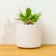 花盆的设计带有细致的直条纹纹理,整体给人简约清新的感觉。