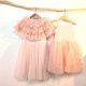 深深浅浅的粉色永远是小公主们的最爱!触感柔软透气的珊瑚粉上半身,搭配轻飘飘又细致的同色蓬蓬纱裙,满布其上的不规则图案的金葱印花,远看有如金属般的色泽,近看则是外表金葱、内里银葱交杂,在灯光下交织闪耀着亮眼的光芒,让人看得目不转睛!转上一圈,轻软的纱裙随风飘起,小女孩儿一穿上身就再也不想脱下来了!