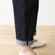 裤长十分,卷边八九分效果,露出赤耳边。