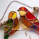 优雅的彩色玻璃鸟 - 真正的微型彩色玻璃窗! 采用蒂芙尼技术制成。 彩色玻璃片使用铜箔和锡相互连接。 有色玻璃。