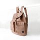 - Brown Backpack Over all size : 37*38*13 cm Front pocket size : 14*16 cm Side pocket size : 23*26 cm Inside pocket size