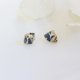 此款金继珠宝,以带有白色纹路的沉稳蓝色陶片,搭配圆点图案的可爱犬纹玛瑙(Dalmatian Jasper)天然石,再施以金继工艺。