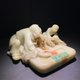 本件《东坡得砚》系本人用手机最真实的拍摄效果,无任何图片处理 ,特此说明! 介绍:作者傅石龙,号石龙,由作家转行为寿山石雕家,早年即有绘画基础加上作家的美学细胞,使之作品充满独特艺术气息,曾被评为石雕新秀。 本件《东坡得砚》是用寿山石之将军洞芙蓉石雕刻而成,将军洞芙蓉为芙蓉石中质地最佳的品种。清代将田黄、白芙蓉和昌化鸡血石并称为“印石三宝”,又把田黄与白芙蓉并称“石帝”“石后”。“将军洞”在典籍中有确凿的坑口开采记载,其地处加良山顶部,开掘于清初,原名“天峰洞”,后来被某将军霸占了开采权,更名为“将军洞”,大量开采,干隆年间,矿洞塌陷,将军洞芙蓉遂不再产出。在原矿洞沉寂了百年之后,八十年代初,石农在塌陷的将军洞原址上重新开凿了洞口,辄又出产了一批芙蓉石,这就是我们当下所能见到将军洞芙蓉石。首先从观感上来说,将军洞芙蓉石的色泽尤为厚重,白者纯净如凝脂,仿佛上好的羊脂白玉,其次,从触觉上感受,将军洞芙蓉石结构紧实、性老质稳。抚摸把玩时,其细腻的特质显得尤为突出,触手生温如同肌肤一般。 本件以上等寿山石将军洞芙蓉石制作,取材大料,一体整雕,石质温润细腻,色泽润泽,包浆自然醇厚,古朴有致。采用圆雕手法雕琢老翁童子,整体比例协调,老翁开脸线条生动,丰颐长髯,神情愉悦,右手似磨砚,身边童子依偎,眉开眼笑,整体线条嫺熟流畅,刻画一丝不苟,栩栩如生,刀法精湛,刻画细腻,不愧为大师级雕工。造型浑朴古拙,刀法嫺熟精湛,摆设和收藏极佳!