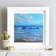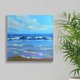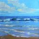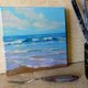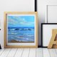 海景油画。原创艺术。海浪。蓝色小艺术品。