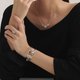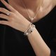 如星空里的太阳系,银河中交错不同的漂亮星球意象,粉晶 ,珍珠母贝,鲍鱼贝等缀饰置于不同的轴线各自美丽。 别致的设计师款。