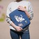 ・简约的蓝色布料上有白虎胖胖虎的刺绣!灰色拉链上有两个可爱的胖胖虎脸。