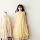 - Vintage 鹅黄色蕾丝花无袖睡衣洋装