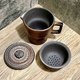此杯身的设计灵感来自于1970年代北欧的器皿设计师之作品,在现今已是少见的杯型,加上柴烧落灰、部份天然金色烧成的纹理调配及花型壶钮的设计,营造出北欧复古及部份金色点缀的质感,绝对是很别致的ㄧ品~