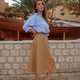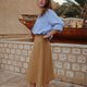 此款高腰伞状裙型,适合各种身高的女性。