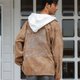这款男士夹克采用厚实的灯芯绒材质制成,饰有水洗印花,营造出复古风格。口袋和背部的刺绣更添时尚气息。此外,它还配有可拆卸的帽子,让您可以根据不同的温度调整造型。