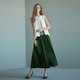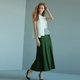 长裙总是能为穿搭增添一分优雅气质,亲近大自然的绿,使整体柔和自在,直排扣与抓褶的设计则让视觉更富有层次。