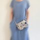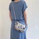 品名:手工车缝制奶灰白花懂树丛图案身小斜肩背布包