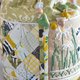 - Unique handbade textile "bottle". Natural cotton & linen fabrics, hand cross stitch embroidery. Wax-cord handle on top, with beads and tassels. Back side made of super-small squares of fabric, quilted. Bottom is very thick, so it holds its shape perfectly. Made in a single copy.