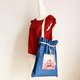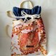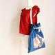 以一针一线、细腻手缝制成的独一无二丹宁 × 雪纺蕾丝斜背包。