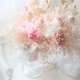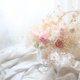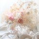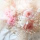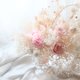 永生花粉玫瑰(大+小)、永生花渐层粉康乃馨、白色永生绣球、粉色永生绣球、杏粉小满天星、粉蓟花、白酸酱果、临花、粉小风铃、白兔尾草