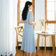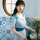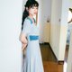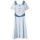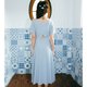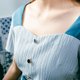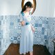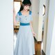 - 看到这款连衣裙是不是第一感觉就比较美,虽然颜色有点素雅,但是在腰部位置用深色拼撞,视觉效果就比较突出,修身的版型,典型复古方领设计,露出天鹅脖颈,前中三颗蘑菇扣点缀,后腰小三角镂空设计,小心机十足,面料肌理条纹比较独特。