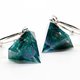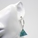 Pentagon-shaped hoop earrings with circle-shaped bijou, blue color, and glitter confined in crystal resin.