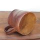 它的特征是不规则、蓬松的形状和大地的质朴质感。一个手工制作的咖啡杯。