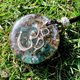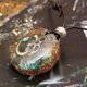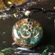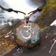 这款吊坠由蓝磷灰石、太赫兹、铜和金属制成,搭配黑色蜡线。