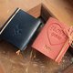 两个皮革颜色的选择, 一个代表他的蓝色, 一个代表她的粉红色