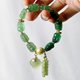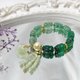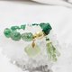 **1.图上绿草莓晶貔貅长约15mm,黄金贝珠约12mm,岫玉如意宽约19.5mm,岫玉流苏高约30mm,整体手围16cm。**