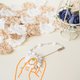 我们为每一款颜色挑选了既不突兀也不单调的配色珠饰。“蓝色款”搭配了蓝色系混色珠子与透明水晶珠。