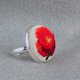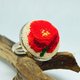红色罂粟花刺绣戒指 为她的十字绣自然首饰手工制作精美花卉礼物