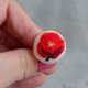 绣有罂粟花的手工戒指。 图案是我设计的,也是我绣的。 我在每幅刺绣图片中使用最大数量的颜色,使其更加逼真和丰富多彩。 这种独特的红色花朵由棉绣线绣在亚麻织物上。 细节: - 圆形为 20x20 毫米(0,8x0,8" ); - 材质:黄铜环底座、棉线、亚麻布; - 戒指是可调节的。