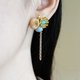 - ● 医疗级抗敏耳针、螺旋耳夹 ● 帝王石、不锈钢链条、水钻、镀18K金配件 ● 耳环总长 5.5cm 2.2cm