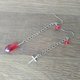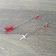 银色动漫耳环,搭配红色水晶和十字吊饰。角色扮演猎人耳环。吊链耳环动漫。适合粉丝的 Cosplay 链用户风格耳环。