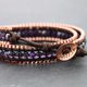 这是手工编织的手链用紫水晶石,紫色刻面珠,方形铜板珠与棕色打蜡聚酯线编织在一起。关闭使用铜板按钮