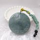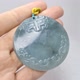 ► 一块正圆的无事牌,刻着仿古雕纹,料子清透细润,呈现海蓝般的寂静感,特色危料蓝水吊坠,保佑健康无事。