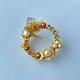 以温柔的金色花环为底,环绕着天然日本淡水珍珠与细致黄铜小花,一只镂空蝴蝶停驻在花间,如同春日午后的诗意一隅。