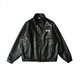 黑色 PROZAK 777機車夾克 Oversize老虎機復古印花寬鬆中性風外套 - 男装外套 - 人造皮革 黑色