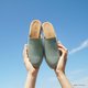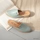 手工鞋左右脚轻微不对称压纹。
