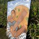 以上是来自画家Chales Msoga对于作品的介绍,我们看到画中主角正在演奏乐器,旁边是山、是荒瘠大地,天空有天使飞翔,大地则是"Draft"游戏的棋盘。这些元素组成了Msoga想传达的理念:"生活像爬山,有高有低,我们要冷静,运用智慧,跟随天使的声音,最终将爬上巅峰"。透过作品,Msoga对所有正在经历难关的人,提供温暖的支持与鼓励。