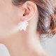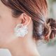 选用欧根纱素材,因此极其轻盈!它能凝聚光线并隨之闪耀、摇摆。由于光影色调一致,佩戴感与肌肤及穿搭完美融合。耳夹部分采用树脂材质,即使是对金属过敏的人也能安心佩戴。