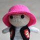 Kalush Crochet Doll - a wonderful souvenir for fans of the band "Kalush Orchestra". It is created in the likeness of the group's leader who won the Eurovision Song Contest in 2022. The doll is dressed in the trendy pink Panama hat that has become the group's trademark and has a realistic appearance with all the details in the outfit.