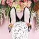 - Black Bunny Ears and Tail Set Ears are: - approximately 4 inches tall - fully wired and posable on the metal headband - decorated with rhinestone accents, hoops, piercing, and removable bows