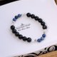 黑曜石+蓝线石+白蝶贝纯银手链