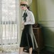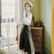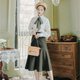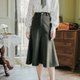 - 军绿色呢料鱼尾裙,面料挺括,手感丰厚,很有质感,前门襟配色拉链,原色木扣点缀,中高腰的设计