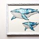 - The art print of calm blue whale family swimming together. It's painted with unique touch pen work and watercolor. Printed with high quality skills and seems like a original picture. If you put it in your favorite frame, easy to decorate your room and also it will make a great gift.