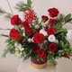2.鲜花花材:进口红玫瑰、松、雪松、丝柏、千两、珊瑚凤梨、白洋桔梗、圣诞球